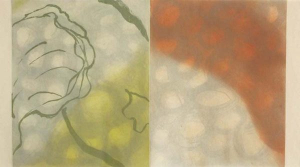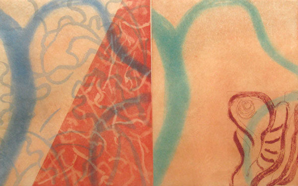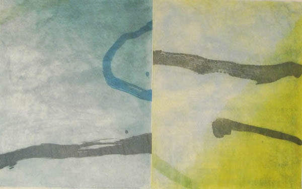 She seeks a balance between the Eastern culture she was born into and the Western world, especially 20th century Modernism, that she has adopted as her home. Allowing impulse and intuition into her compositions and colors, she creates complex multiple-plate intaglio prints that have a quiet, seemingly effortless beauty.