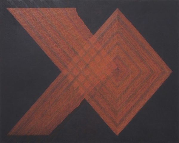 The artist’s approach to drawing is rooted in a desire to represent the purity of line. He selects a starting point on the paper and draws a repeated continuous line freehand until a shape is formed. Because of the subtle changes in line quality, the linear composition creates an intricate stratified pattern in his finished work that suggests mountain ridges.