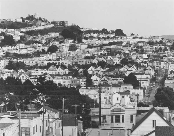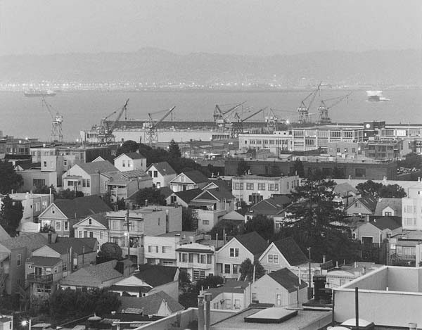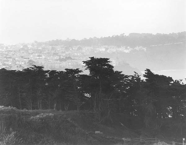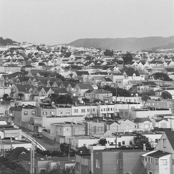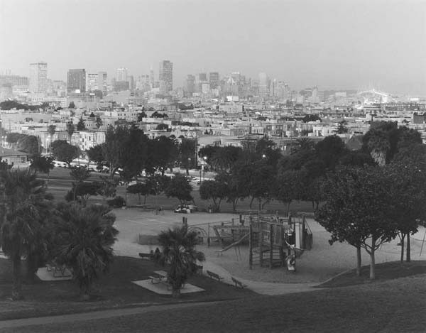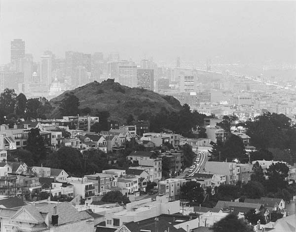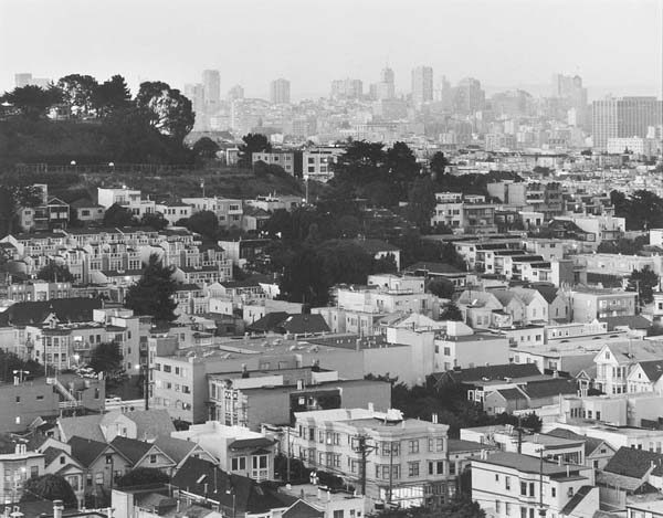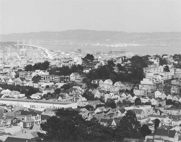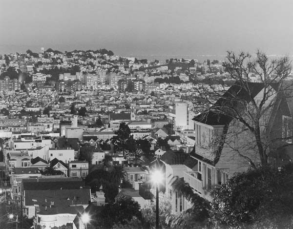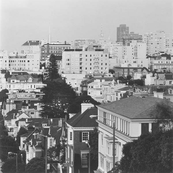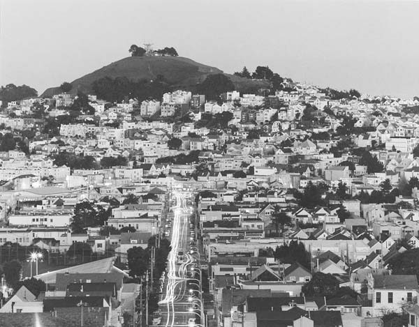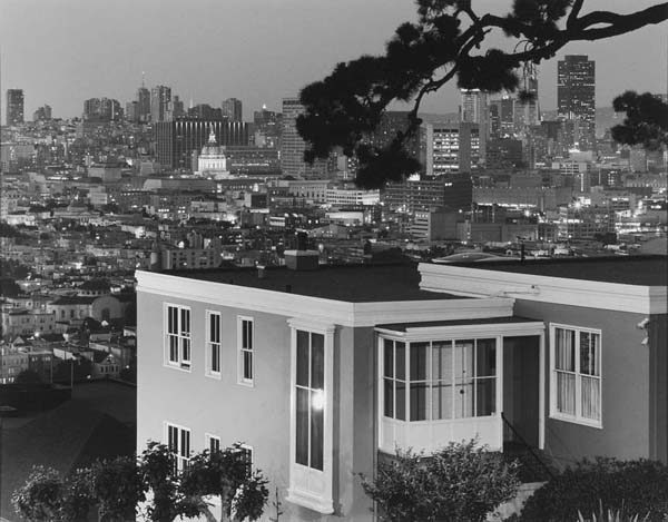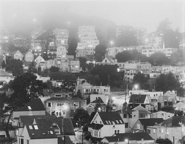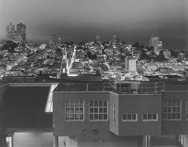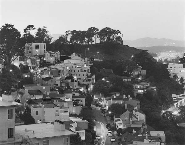 The San Francisco landscape has interested me for a long time, especially in the numerous variations of how the city’s architecture reflects the features of its mountains and hills. My current series of black and white images carefully examines the truly unique nature of the landscape here during the transitional moments between day and night. The long exposures often convey aspects of time and motion that would not be recorded during the daytime. Specific locations and monuments in these studies are less important than how they are transformed by the ambiguous presence of both natural and artificial light.